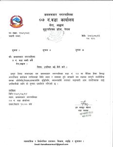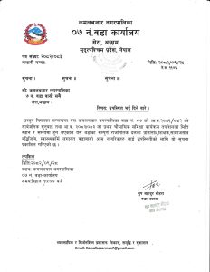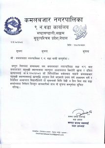 कमलबजार नगरपालिका वडा नं ९ मष्टाबण्डालीको जनहितमा जारी सन्देश