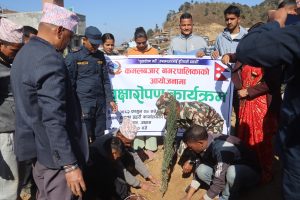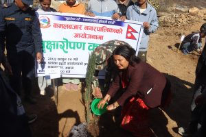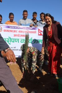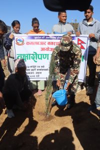 कमलबजार नगरपालिकाको आयोजनामा आज वृक्षारोपण गरिएको छ । निर्वाचन प्रहरीको विशेष सक्रियतामा कमलबजार स्थित ईलाका प्रहरी कार्यालय प्राङगण परिसरमा वृक्षारोपण गरिएको हो । कमलबजार लाई हरियाली बनाउने उदेश्यले पेन्सील धुपी र एभोकाडोका २७ वटा विरुवाको वृक्षारोपण गरिएको ईलाका प्रहरी कार्यालयका प्रमुख प्रहरी निरीक्षक सरोज कैलाले जानकारी दिनुभयो । वृक्षा रोपण कार्यक्रम पश्चात कमलबजार नगरपालिकाका नगर प्रमुख यज्ञ प्रसाद ढकालले कमलबजारको सौन्दर्यता कायम राख्दै बजार क्षेत्रलाई हरियाली बनाउन वृक्षारोपण कार्यक्रमलाई निरन्तरता दिईने बताउनु भयो । साथै वृक्षारोपण कार्यक्रम सफलपार्न सहयोग गर्ने जिल्ला स्थित विभिन्न सुरक्षा निकायका पदाधिकारी, विभिन्न पालिकाका प्रमुख तथा प्रतिनिधी, स्थानीय नागरिक र निर्वाचन प्रहरी लाई धन्यवाद व्यक्त गर्नु भयो । आजको वृक्षारोपण कार्यक्रममा कमलबजार नगरपालिकाका नगर प्रमख यज्ञप्रसाद ढकाल, तुर्माखाद गाउपालिकाका अध्यक्ष डम्मर बहादुर बि.सी. ढकारी गा.पा. अध्यक्ष प्रकाश बहादुर साउँद, पञ्चदेवल विनायक नगरप्रमुख, अम्बिका चलाउने, कमलबजार न.पा. वडा नं.१ का वडा अध्यक्ष भक्त बहादुर बोहरा, कमलबजार न.पा.वडा नं.८ अध्यक्ष प्रजाबहादुर बोगटी, कमलबजार न.पा. वडा नं.२ अध्यक्ष दिर्घा टमट्टा कमलबजार न.पा. वडा नं.१ का वडा सदस्य पदम प्रसाद ढकाल, कमलबजार न.पा. वडा नं. १० का वडा सदस्य हस्त बहादुर बिष्ट, कमलबजार नगरपालिकाका प्रशासकीय अधिकृत खडक बहादुर बिष्ट, कमलबजार खानेपानी समिती अध्यक्ष प्रेम प्रसाद ढकाल, स्थानीय समाजदेवी जिबन धमाला, यस्तै जिल्ला स्थित विभिन्न सुरक्षा निकायका तर्फ बाट प्रमुख जिल्ला अधिकारी यज्ञ बहादुर बुढा, जिल्ला प्रहरी कार्यालय अछाम प्रमुख प्रहरी नायव उपरीक्षक ओमप्रकाश खनाल, इलाका प्रहरी कार्यालय कमलबजारका प्रमुख प्रहरी निरीक्षक सरोज कुमार कैला, ईलाका प्रहरी कार्यालय कमलबजारका सुवेदार मेजर प्रहरी नायव निरीक्षक कर्ण बहादुर बुढा , प्रहरी सहायक निरीक्षक कर्ण पार्की, प्रहरी बरिष्ठ हवल्दार प्रेम बहादुर भण्डारी , हवल्दा दिपेन्द्र थापा राष्ट्रिय अनुसन्धान प्रमुख अशोक पौडेल, प्रमुख सेनानी राजु महर्जन, सेनानी दिपक थापा, इ.प्र.का.कमलबजारका लेखा–प्रमुख प्रहरी सहायक निरीक्षक ज्ञान बहादुर कैला ,सशस्त्र प्रहरी नायव उपरीक्षक दुर्गा प्रसाद भट्ट, अस्थायी ट्राफिक प्रहरी पोष्ट कमलबजारका प्रमुख प्रहरी हवल्दार अम्बादत्त अवस्थी, पत्रकार महासंघ अछामका उपाध्यक्ष पवित्रा खड्का, रेडियो नेपालका अछाम संवाददाता हिक्मत बहादुर नेपाली, निर्वाचन प्रहरी लगायत समाजमा विभिन्न क्षेत्रका प्रतिष्ठित व्यक्तिको उक्त कार्यक्रममा सहभागीता रहेको थिय