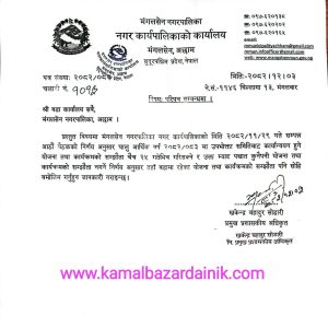 उपभोक्ता समिति मार्फत कार्यान्वयन हुने योजना तथा कार्यक्रमको सम्झौता चैत २५ सम्म गरिसक्ने सम्बन्धि मंगलसेन नगरपालिकाको सूचना (विस्तृतमा हेर्नुहोस)