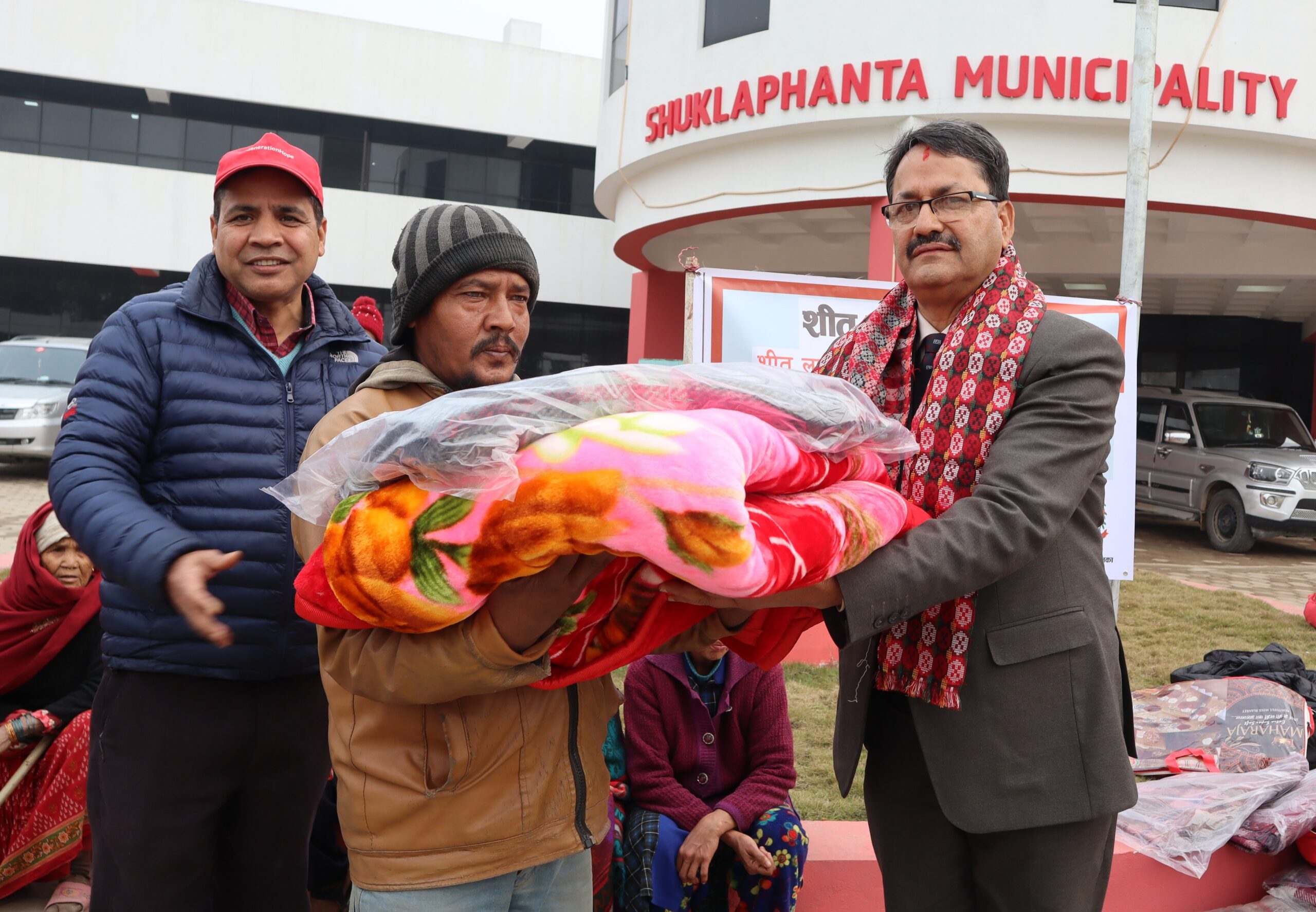 परराष्ट्रमन्त्रीद्वारा कञ्चनपुरका शीतलहर प्रभावित समूदायलाई कम्बल हस्तान्तरण